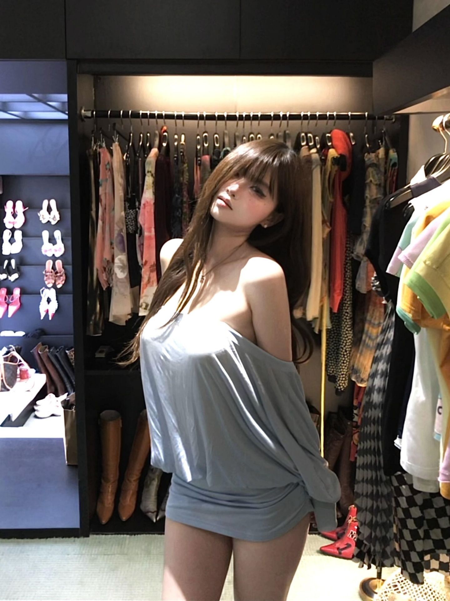 Blue One-Shoulder Long Sleeve Dress for WomenSlim-Fitting Waist-Cinching Skirt, Batwing Sleeve, Pure Seductive Style Bodycon Mini Dress