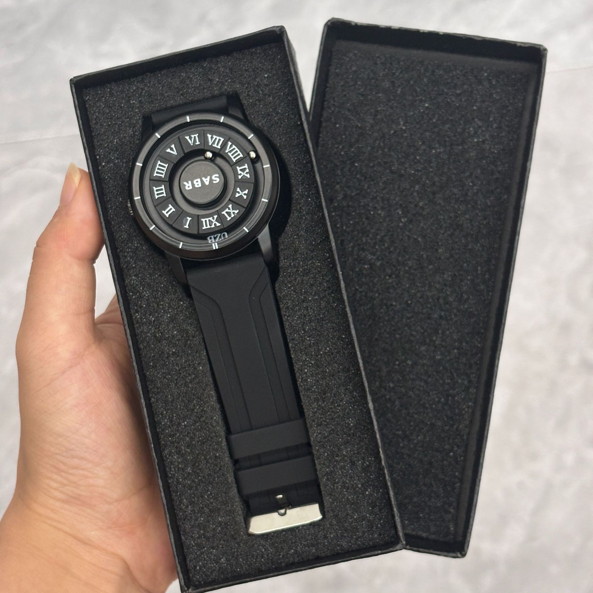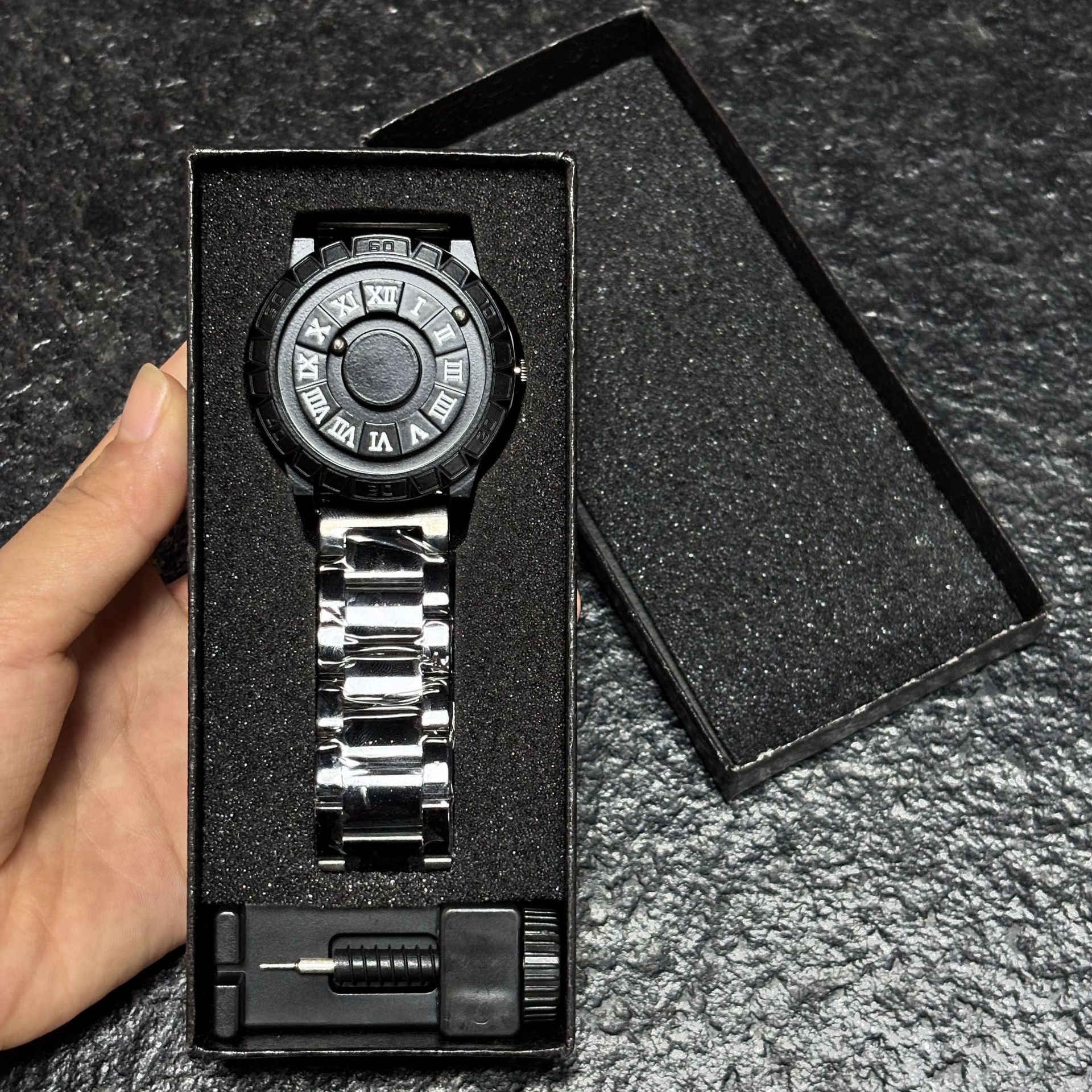 Casual Arabic Numeral Quartz Men's Watch with Magnetic Floating Design, Water Resistant, Fashionable and Unique Style